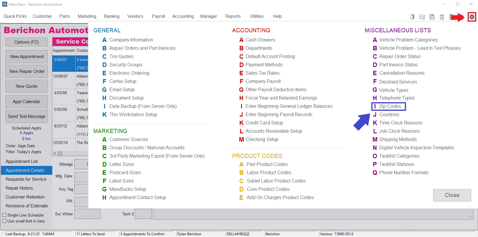 Click the gear icon to bring up the settings screen. Go to "Zip Codes."