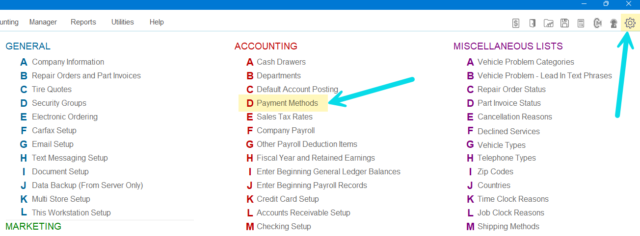 MaxxTraxx comes with 27 different payment methods to use for closing out Repair Orders. You have the ability to hide the ones you don't use and edit the ones that you do use.